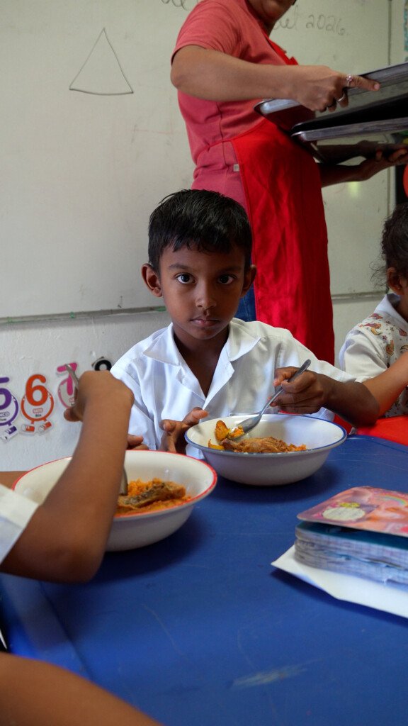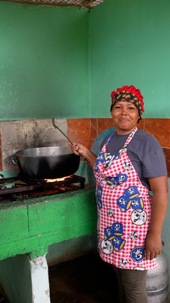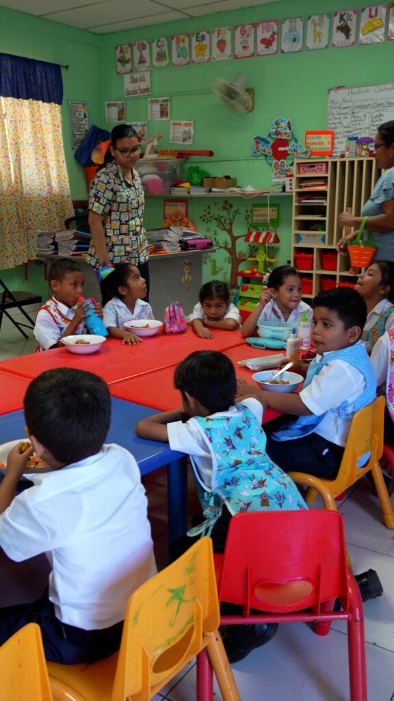 Con el apoyo de la Fundación Nuevas Rutas de Puerto Barú, este centro educativo cuenta con una cocinera dedicada que, une esfuerzos con las madres de familia de la comunidad. Juntas, transforman los insumos en platos cargados de bienestar en beneficio de la niñez.